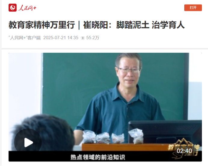 近日,我校林学院崔晓阳教授教师风采视频“脚踏泥土 治学育人”入选教育部“教育家精神万里行”展播活动,在人民网、央广网、环球网、中国网等多平台同步播出。